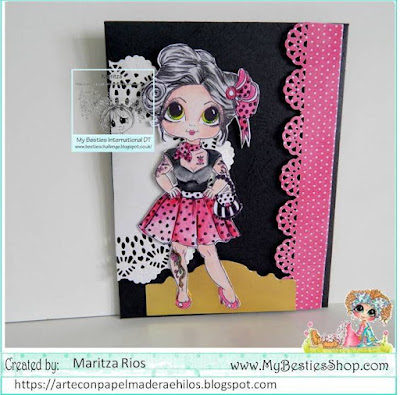 La imagen la he pintado con lapices polichromos prismacolor, la tarjeta la he realizado en colores fucsia negro dorado y blanco, me encanta el contraste con estos colores.